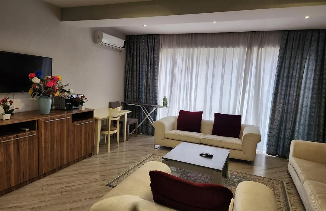Eine komplette Küche mit einem Wasserkocher, einem Kühlschrank und Küchenutensilien gehört zur Ausstattung der Unterkunft für Selbstversorger. Die U-Bahn-Station Khatai ist nicht weit entfernt von dieser Unterkunft entfernt, damit Sie das ganze Baku erkunden können. Für aktive Gäste steht ein Fitnessstudio im Gebäude zur Verfügung.
